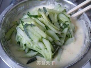 4. 切黄瓜丝的顺序:先切黄瓜片,再切成黄瓜条,最后切成黄瓜丝,这样切出来的黄瓜丝更加整齐。